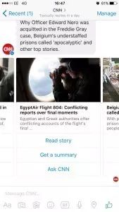 上月,F(xiàn)acebook開放了它們的動靜平臺,讓任何企業(yè)創(chuàng)建的聊天機(jī)器人與9億用戶直接交流。 CNN是四月首批推出機(jī)器人的內(nèi)容供給商,并且可以供全球觀眾使用。CNN目前擁有2150萬FB粉絲,CNN國際頻道也擁有1160萬,他們的聊天機(jī)器人可以知足所有這些粉絲,負(fù)責(zé)照看機(jī)器人的團(tuán)隊隸屬于CNN環(huán)球數(shù)字部分。 CNN聊天機(jī)器人的目標(biāo),是通過吸引全球各地新的觀眾、提供應(yīng)他們更加個性化的新聞體驗,來擴(kuò)大自身的國際影響力。 “動靜類應(yīng)用對新聞來說是個成熟的平臺,由于這里可以一對一的交流,但是也可以作為媒體,大規(guī)模的廣播動靜。這就是其令人高興的原因所在。四大通信應(yīng)用已經(jīng)超越了四大社交平臺。”Wellen如是說。 CNN聊天機(jī)器人推出已近一月,他們都有哪些重要的發(fā)現(xiàn)呢? 哪里流血,哪里就能引發(fā)關(guān)注