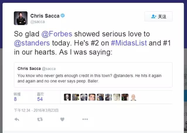 (福布斯宣布2016年最佳創(chuàng)投人排行榜的時候,Chris Sacca在twitter上對Steve Anderson表達了自己的敬(ai)意(yi) ,嘿嘿嘿) 牽線twitter和Anderson的是Baseline Ventures曾經(jīng)的合伙人Ron Conway。Conway是Anderson在凱鵬華盈時期的良師,他的到來不僅給Baseline Ventures引來了充足的資金,同時和twitter的合作也改變了Baseline Ventures的命運(翻譯:就是因此賺了良多錢的意思)。 然而,Conway和Anderson的合作并沒有持續(xù)多久。當時Conway十分看好社交媒體,想要一次性投資一堆羽翼未豐的社交媒體創(chuàng)業(yè)公司。而Anderson以往的做法是,只選擇他以為有價值的公司,然后砸錢,一年投的項目,不會超過十個。 Conway由于無法忍受這種龜速的投資狀態(tài),終極離開了Baseline。