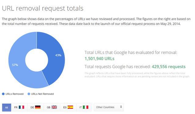 (圖片來源:谷歌官方博客) 但不管如何,大量證據(jù)確實顯示谷歌將自己的服務放在了搜索結果的最佳位置,歐盟的處罰也算是無可厚非。 除了反壟斷,歐盟還不停給谷歌找其他“麻煩” 除了這漫長而代價巨大的壟斷官司外,歐盟在隱私保護上的一些“奇葩”法律法規(guī),也在不停沖擊著以搜索為業(yè)務基石的谷歌。 歐盟在2014年5月通過了一項名為“right to be forgotten”(被遺忘的權利)的法案。然后谷歌就變得十分忙碌,為什么一個政策會讓谷歌忙起來?我們先看一下紐約時報列舉的例子,了解一下歐盟的這個政策。 假設,你在10年前犯了一個很傻的錯誤,由于一個惡作劇而被以操行不真?zhèn)罪名起訴。而之后這項起訴被撤銷。你的檔案沒有題目,但不巧的是,這起事件在當時被一個無聊的地方報紙報道了,而報道也永久地留在了他們的網(wǎng)站上——這意味著,每個搜索你名字的人,都可以在搜索結果中看到你的這一黑歷史。這讓你很困擾。 但是,假如你在歐洲,現(xiàn)在好了,歐盟通過的這個法案將匡助你“洗白”。在這項劃定下,你可以要求搜索引擎在他們的歐洲版網(wǎng)站上的搜索結果中,移除這篇報道。當然,這篇文章并不是被刪除了,它還在原網(wǎng)站上好好地待著,只不外不會被搜出來了。 歐盟的這一決議計劃讓谷歌很為難,谷歌一向自夸是全球自由信息的提供者,如今卻要常常按歐洲各國政府的要求,從自己的數(shù)據(jù)庫中刪除信息。而且,讓谷歌更痛苦的是,歐盟還將是否刪除信息的決定權,交給了谷歌自己。據(jù)谷歌稱,目前已經(jīng)處理了43萬刪除哀求,涉及150萬條url。