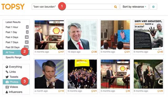 使用這個指令進行檢索,你會得到關(guān)于包含樞紐“Shell”但是不包括“Ben”的結(jié)果。你會發(fā)現(xiàn)殼牌CEO Ben van Beurden也常常會被稱為“Bernardus van Beurden”。 盡可能檢索到關(guān)于目標人物或事件更多的代稱,可以讓你把握的信息更加充分和完整。 6.在Toipsy中使用圖片搜索