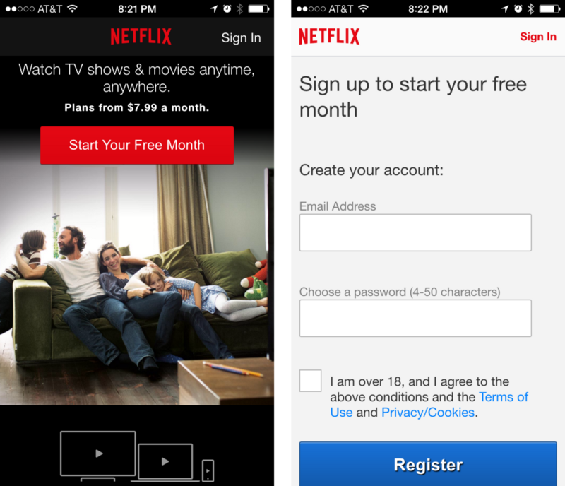 NetFlix 曾經(jīng)給予用戶一個(gè)月的免費(fèi)試用,不外用戶需要注冊之后才能使用這一福利。 一般說來,用戶在提供個(gè)人信息注冊之前,會(huì)瀏覽一下網(wǎng)站內(nèi)容,了解這個(gè)網(wǎng)站是什么樣的類型、提供什么樣的服務(wù),再做決議計(jì)劃,對于從未聽過的品牌尤其是如斯。想要打破轉(zhuǎn)化率的壁壘,你在設(shè)計(jì)網(wǎng)站的時(shí)候應(yīng)該做到下面幾點(diǎn):