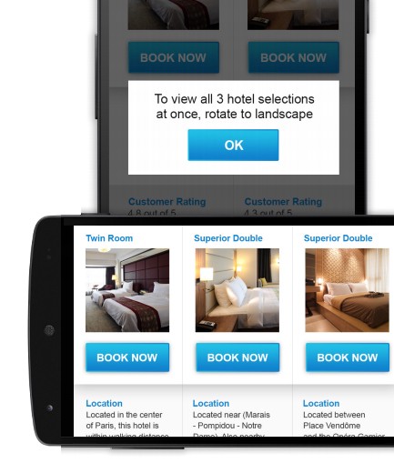 9、告知用戶選擇更公道的屏幕方向 不同的屏幕方向下,用戶的瀏覽體驗(yàn)會(huì)完全不同的。用戶慣于在統(tǒng)一屏幕方向下完玉成部的操縱,所以提醒他們切換方向可以晉升網(wǎng)站瀏覽的用戶體驗(yàn)。所以,當(dāng)你的網(wǎng)站偏向展示性,并且使用橫屏?xí)r瀏覽體驗(yàn)更佳的話,不妨使用行為召喚設(shè)計(jì)來提示用戶。