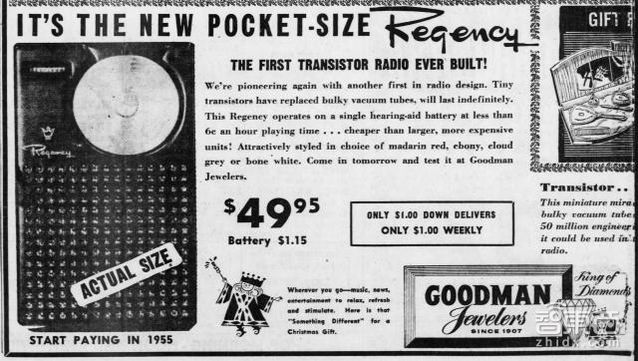 別訴苦它的顏值和大塊頭了,這玩意兒可誕生于1900年!而定價只要1美元!由此,柯達(dá)讓相機離開了三腳架,開始進(jìn)入日常糊口。對于柯達(dá)而言,相機固然價格很低,但是它可以通過銷售膠卷賺錢。 7. Regency TR-1 Transistor Radio