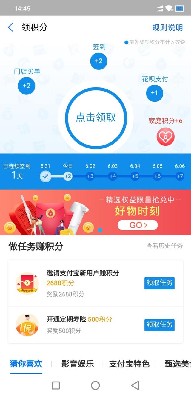 隨著電子付出年代的到來(lái),支付寶幾乎成了家喻戶曉的付出方法。許多年輕人對(duì)支付寶研究的很透徹,也會(huì)利用一些活動(dòng),領(lǐng)取福利,支付寶積分便是支付寶的福利之一,