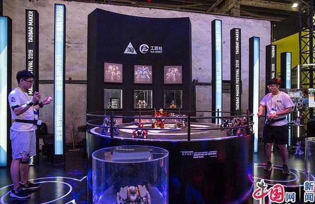 2019年9月11日,浙江省杭州市,提早探營淘寶造物節(jié)現(xiàn)場。一家體感機器人搏斗的展臺招引了在場很多人的注意力。這家名為工匠社的公司從深圳來到杭州,