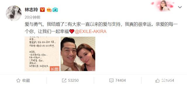 宅男心中的女生志玲姐姐宣告成婚了!皭叟c勇氣,我成婚了。有我們一直以來的愛與支持,我真的很走運(yùn)。親愛的每一個(gè)你,讓我們一同美好。”