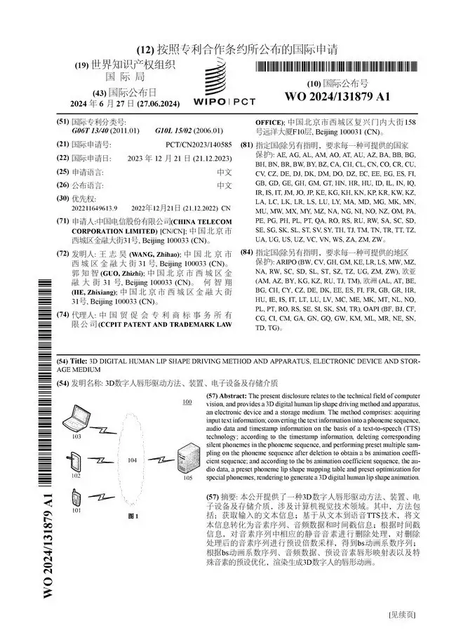 證券之星消息,根據(jù)企查查數(shù)據(jù)顯示,中國(guó)電信(601728)公布了一項(xiàng)國(guó)際專利申請(qǐng),專利名為“3D 數(shù)字人唇形驅(qū)動(dòng)方法、裝置、電子設(shè)備及存儲(chǔ)介質(zhì)”,