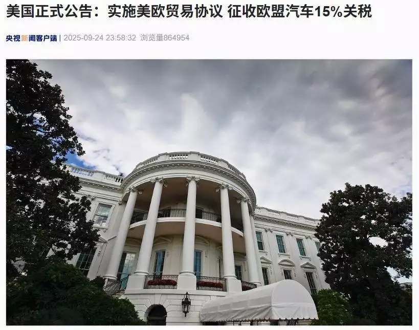 美國商務(wù)部與貿(mào)易代表辦公室于當?shù)貢r間9月24日發(fā)布聯(lián)合公告,正式確認對歐盟進口汽車及汽車產(chǎn)品征收15%的關(guān)稅,此決定將追溯至2025年8月1日起生效。