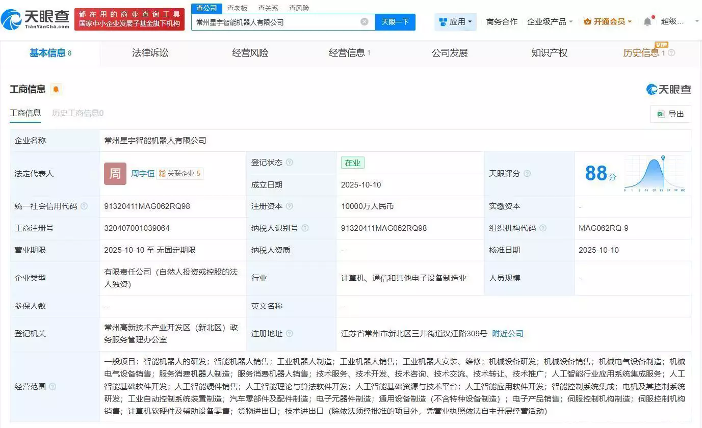 星宇股份近日成立了名為“常州星宇智能機器人有限公司”的全資子公司,注冊資本為1億元人民幣。法定代表人為周宇恒,經(jīng)營范圍包括智能機器人的研制