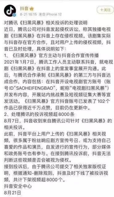 近騰訊與抖音就長、短視頻版權(quán)問題“握手言歡”,雙方宣布“將盤繞長短視頻聯(lián)動(dòng)推行、短視頻衍生創(chuàng)作展開協(xié)作!边@一舉措,惹起了社會(huì)的普遍關(guān)注與討論。被看做是“長短視頻之爭的一個(gè)“新拐點(diǎn)”。 很多網(wǎng)友慨嘆“早該如此”,
