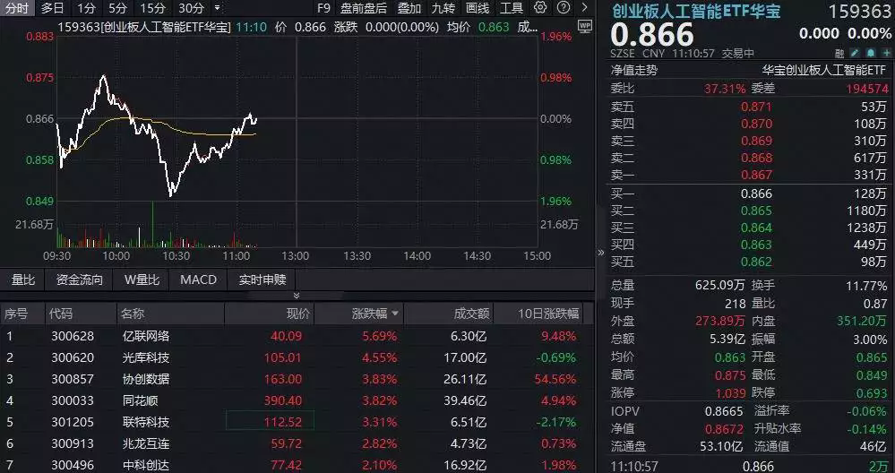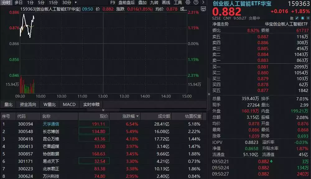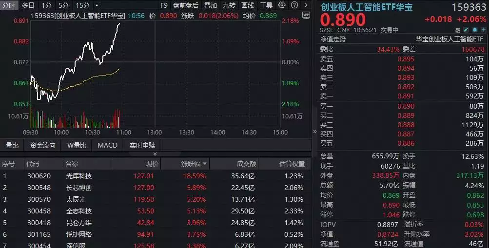 創(chuàng)業(yè)板人工智能板塊今天(2025年9月18日)出現(xiàn)了探底回升的走勢(shì),光模塊板塊表現(xiàn)尤為強(qiáng)勁,帶動(dòng)相關(guān)ETF和個(gè)股上漲。18日早盤(pán),