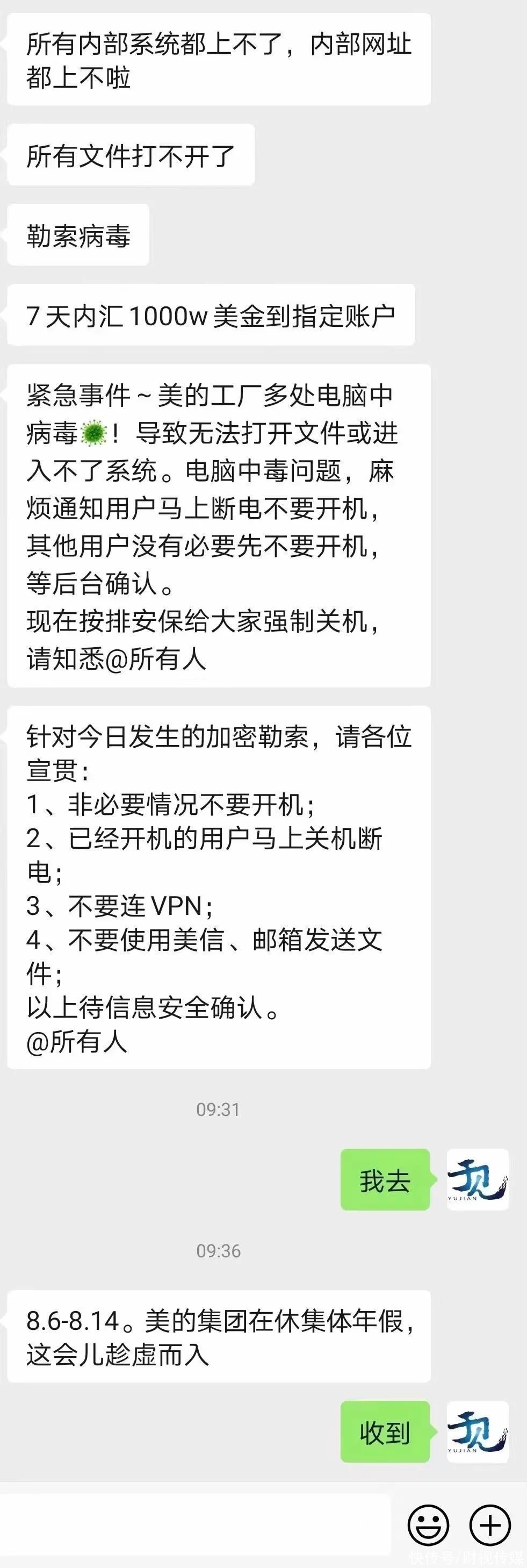 8月11日晚間,微博@美的集團針對“公司內(nèi)網(wǎng)遭受電腦病毒侵略,被勒索1000萬美金”風聞發(fā)布闡明。美的表示,8月11日,美的集團遭受新型網(wǎng)絡病毒進犯,