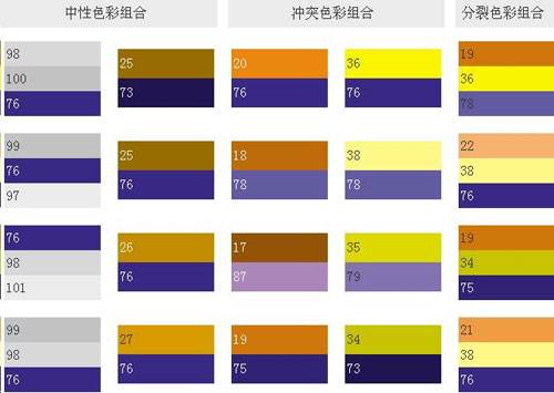 純藍(lán)和一些紅色結(jié)合在一起會(huì)發(fā)生藍(lán)紫色的感覺(jué),這是色相環(huán)上最深的顏色。這類(lèi)顏色調(diào)配可象征權(quán)威,表現(xiàn)出皇家的氣度,就象夏日的梅子,有莫測(cè)高深的藍(lán)黑,藍(lán)紫和它的補(bǔ)色——黃橙調(diào)配起來(lái),