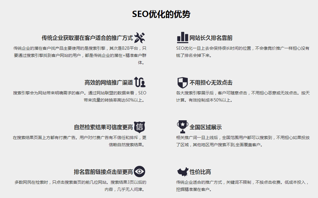 一個企業(yè)網(wǎng)站想要開展起來終究仍是要靠用戶體會,百度現(xiàn)在也重視這一方面。到現(xiàn)在為止,許多網(wǎng)站都是由于缺少用戶體會導(dǎo)致K站,那么什么是用戶體會呢?說的簡單點的就是能夠滿意客戶經(jīng)過關(guān)鍵詞進入網(wǎng)站得到想要信息。