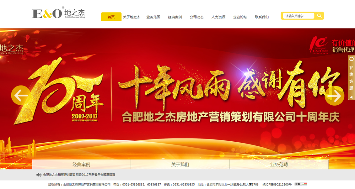 合肥地之杰房地產(chǎn)営銷策劃有限公司成立于2007年.公司自成立以來(lái),始終把自己定位于專業(yè)地產(chǎn)顧問(wèn) 公司:以合肥立足點(diǎn)專注地為安徴二.三線城市地產(chǎn)商服務(wù).此務(wù)范圍涵兼住宅地產(chǎn),商業(yè)地產(chǎn)以及體育、 休閑、旅游等綜合類地產(chǎn):業(yè)務(wù)領(lǐng)域渉及到前期投資咨詢、開(kāi)發(fā)顧問(wèn)、產(chǎn)品規(guī)劃設(shè)計(jì)踴問(wèn)、銷售代理.銷售回 款廣告策劃與推廣'活動(dòng)組織與執(zhí)行,物業(yè)顧問(wèn)等地產(chǎn)開(kāi)發(fā)投資十幾個(gè)環(huán)節(jié)•合肥地之杰努力做安徽本土領(lǐng)先的地產(chǎn)綜合服務(wù)商!