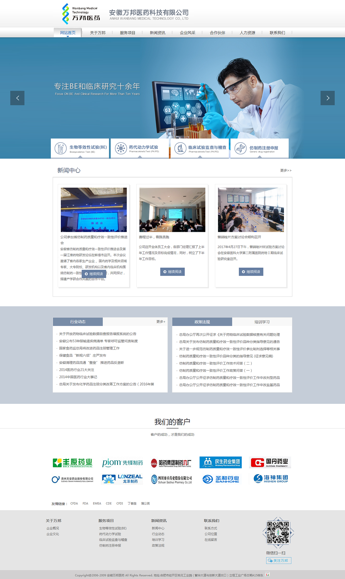 安徽萬邦醫(yī)藥科技有限公司于2006年成立于科教之城合肥,是一家為藥品生產(chǎn)企業(yè)提供仿制藥一致性評(píng)價(jià)、人體生物等效性試驗(yàn)、人體和動(dòng)物藥代動(dòng)力學(xué)試驗(yàn)、臨床稽查和監(jiān)察等技術(shù)服務(wù)的國家高新技術(shù)企業(yè)。目前與國內(nèi)多個(gè)臨床機(jī)構(gòu)擁有緊密的合作關(guān)系,已完成生物等效性試驗(yàn)和藥代動(dòng)力學(xué)試驗(yàn)共計(jì)200余項(xiàng),項(xiàng)目經(jīng)驗(yàn)豐富,是國內(nèi)新藥臨床研究領(lǐng)域較有影響力的CRO公司之一。